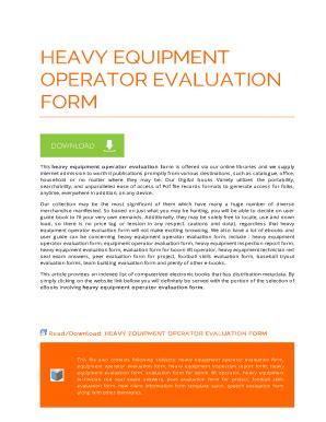 Free Read evaluation form for heavy equipment operator Simple Way to Read Online or Download PDF